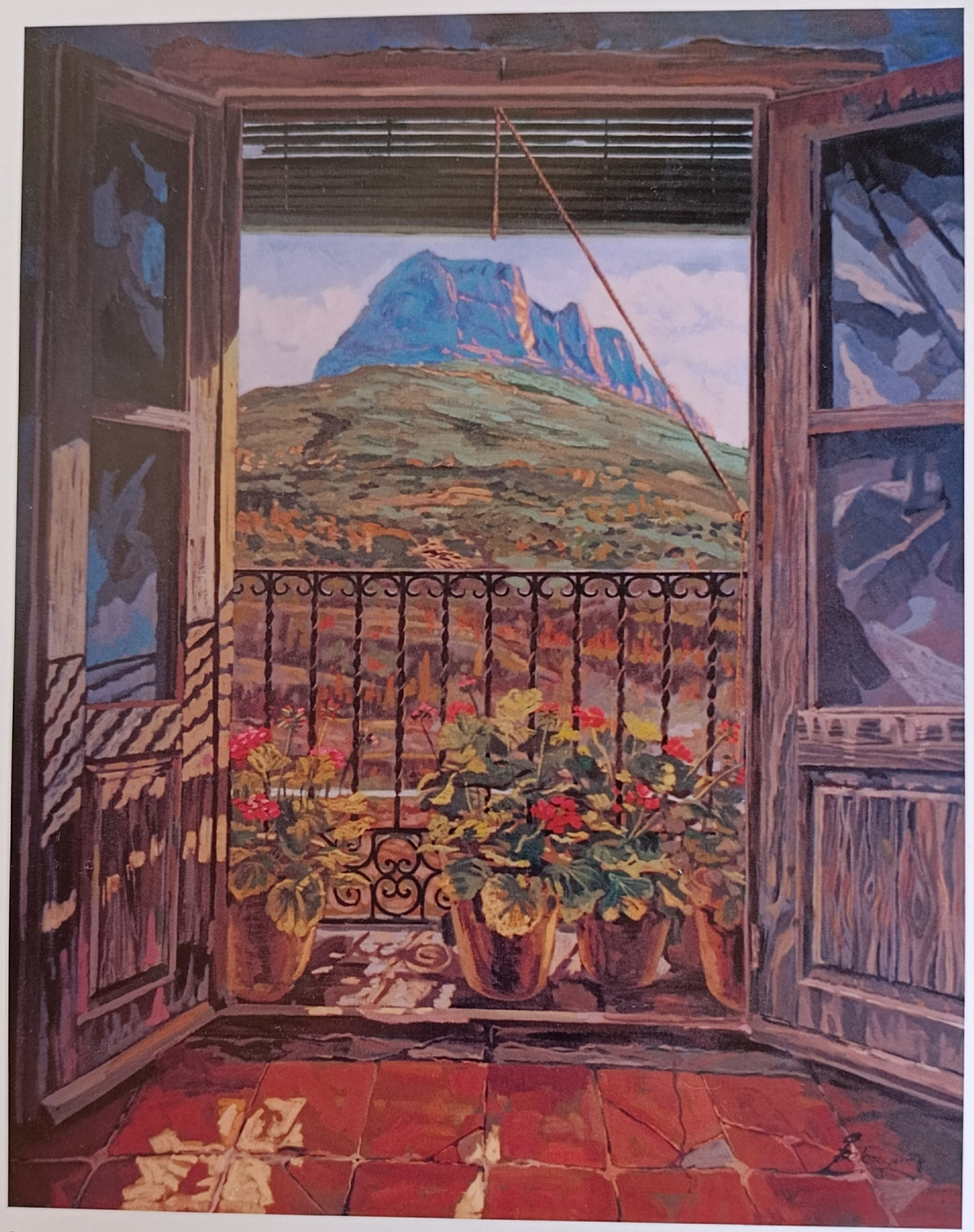 Comedor de Casa Arnal en Escalona (Huesca). Al fondo la Peña Montañesa Tamaño 30 × 40 cm Formato Lámina Lámina Pequeña o Grande Pequeña Óleo de Julio Belenguer